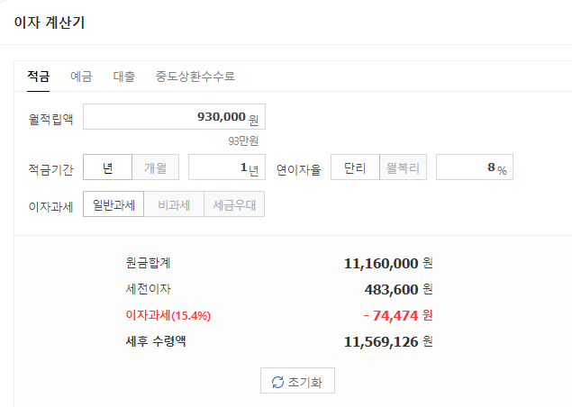 이자계산기로 계산을 해보겠습니다.